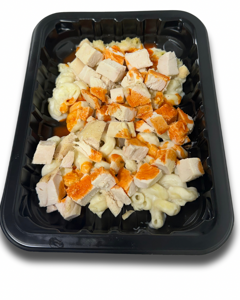 Our Artisan Buffalo Chicken Mac n Cheese is the perfect blend of savory, creamy flavor. It features all natural chicken atop a delicious high-protein macaroni and cheese dish, all covered in a zesty buffalo wing sauce. This dish is sure to satisfy your craving for a savory meal. Contains both wheat and dairy.