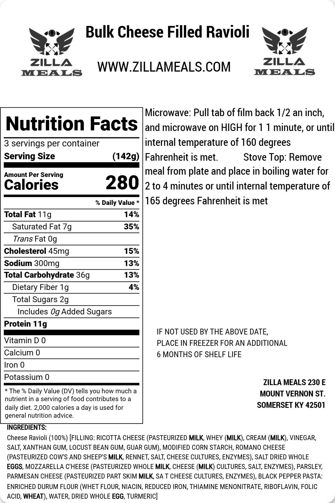 Indulge with the comfort of our Cheese Filled Ravioli. Each tender pasta pocket bursts with a creamy, savory cheese blend that delivers authentic flavor in every bite. Perfect to satisfy those pasta cravings with 11 grams of protein per serving!